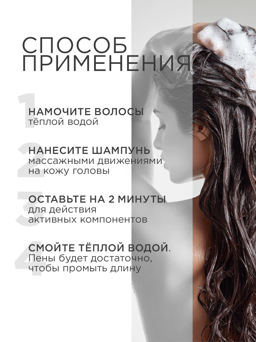 Его кремовая пена мягко очищает волосы и кожу головы, сохраняя естественный баланс и придавая ощущение свежести и лёгкости.